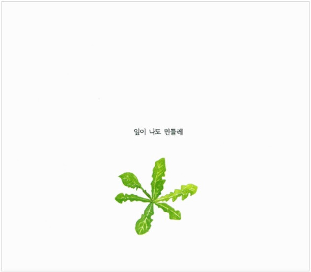 <민들레는 민들레>의 문장도 <산도화>처럼 대게 3음보로 이루어져 있다. 예를 들면, 한 페이지에 ‘꽃줄기가 쏘옥 올라와도’, 그다음 페이지에 ‘민들레는 민들레’라는 문장을 배치했다. 그래서인지 이 그림책을 소리 내어 읽어보았을 때, ‘3음보’와 특정한 단어 ‘민들레는 민들레’ 라는 단어가 반복되어 짧은 노래 같다는 느낌이 들었다. 또한 이 그림책에서도 ‘여백의 미’를 느낄 수 있다. 물론 <산도화>는 두어 송이 핀 산도화를 글로 묘사했고, <민들레는 민들레>는 하얀 공간이 남도록 민들레를 그렸다. 하지만 그것이 어떠한 형태로 표현이 되든 간에 독자들은 그 비어 있는 공간에서 무한한 이미지를 떠올릴 수 있다. ‘여백’은 우리나라에서는 자아 탐구의 원동력이 되었던 실학사상에 영향을 받았으며, 많은 의미가 함축되어 있다. 미완성의 공간이 아닌 상상력을 확대하는 공간인 것이다.